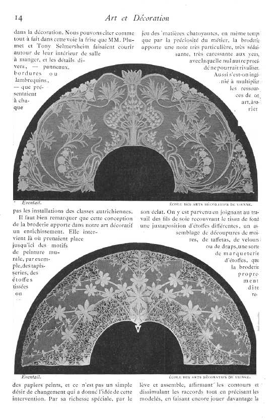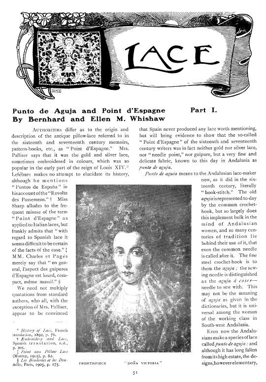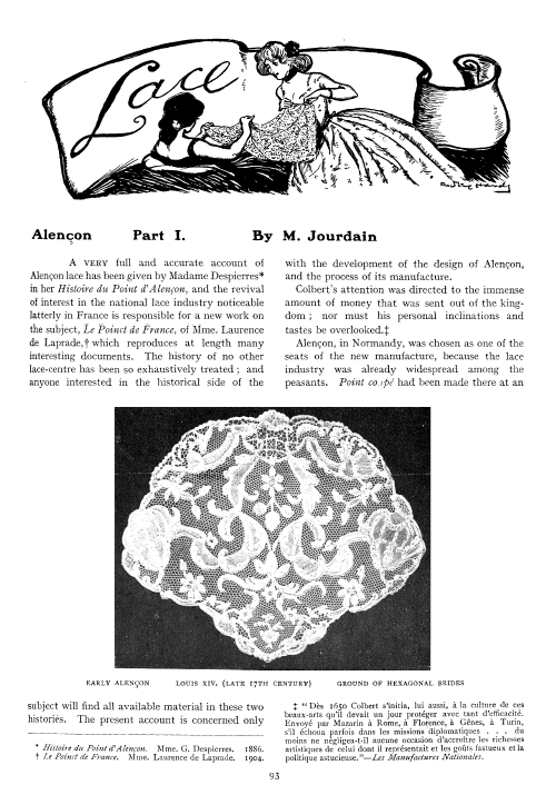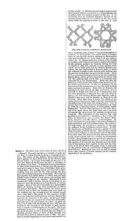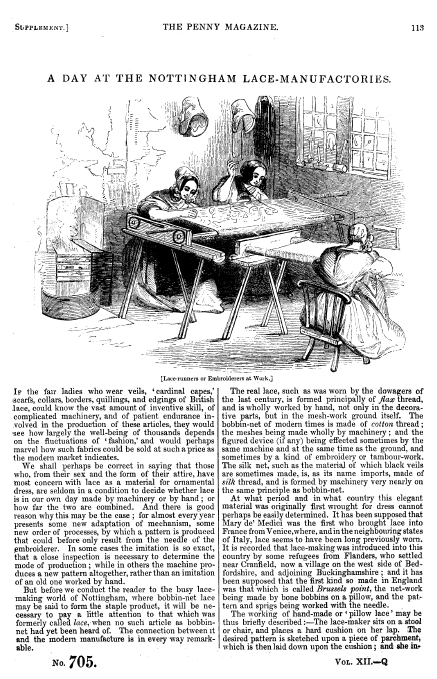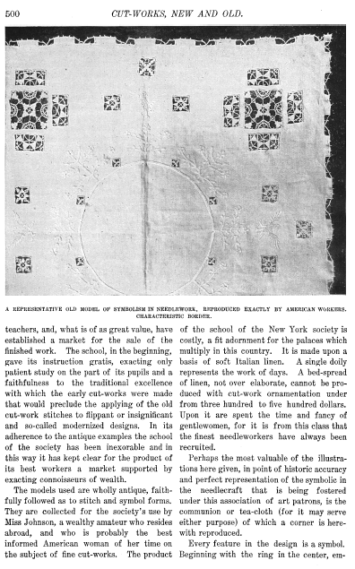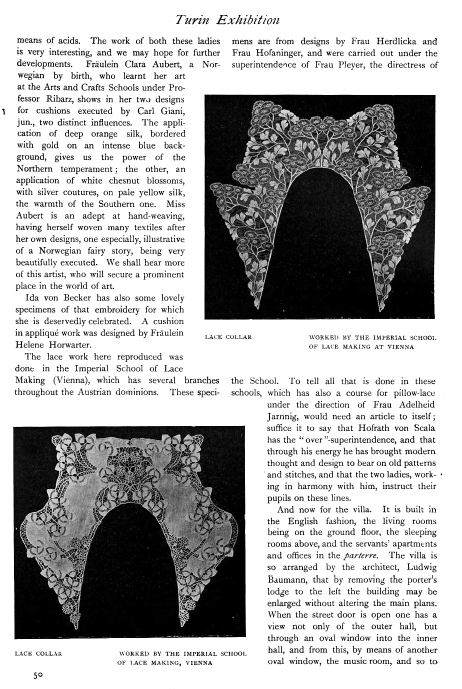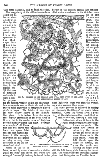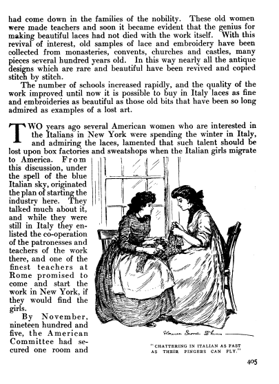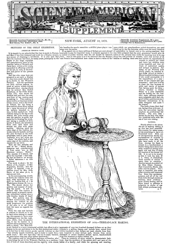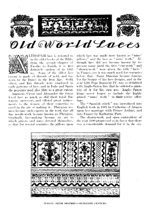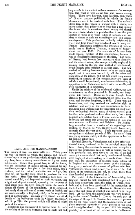L'École de Dentelles de Vienne [The Lace School at Vienna], Verneuil, M. P. Appleton's Encyclopedia, Vol. 14 (May 1903), 8 pages. Posted June 16, 2005. SAMPLE PAGE. File size 2.5 MB PDF
