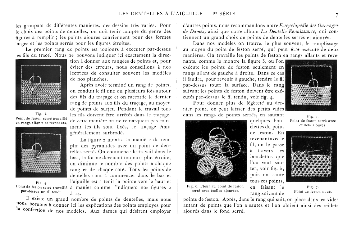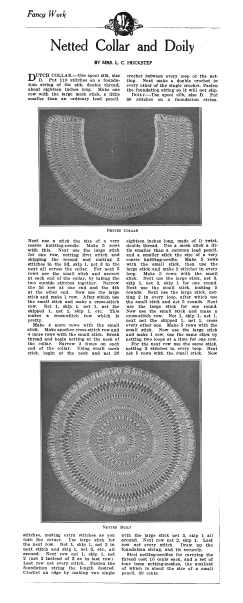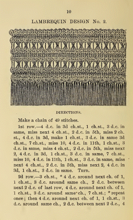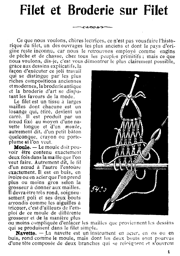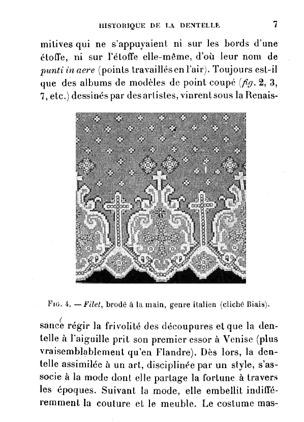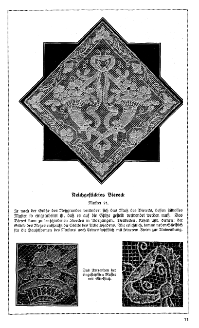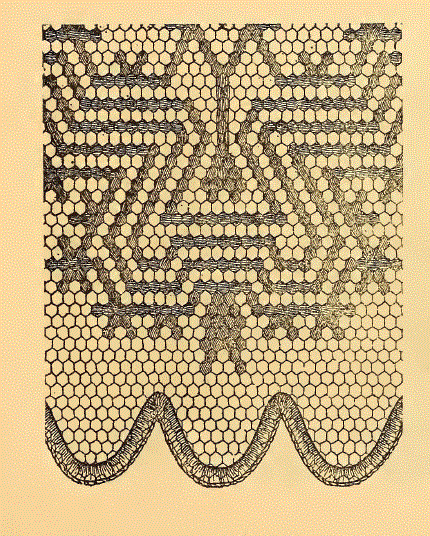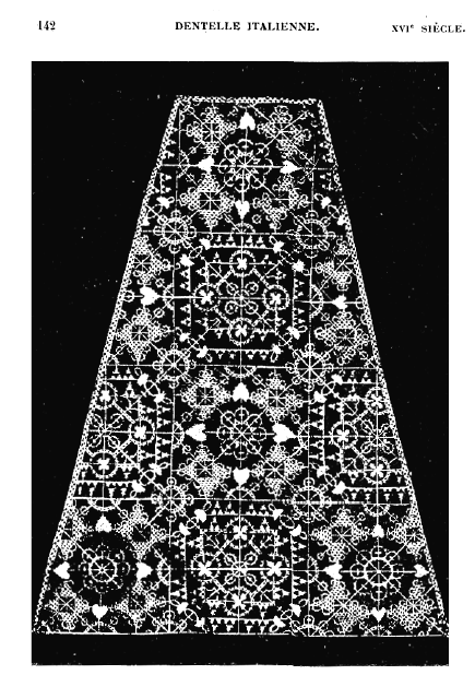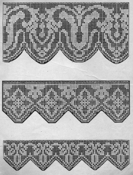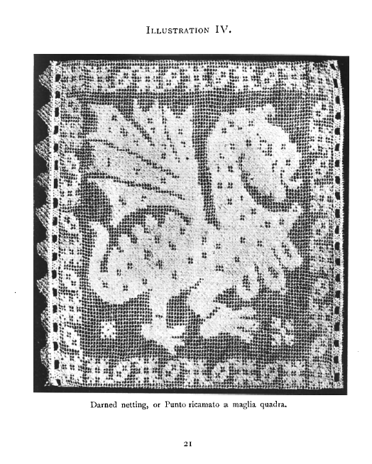 Le Filet Brodé [Filet Lace], P.-Verness, M. Appleton's Encyclopedia, Vol. 24 (December 1908), 14 pages. Posted June 16, 2005. SAMPLE PAGE. File size 6.4 MB PDF