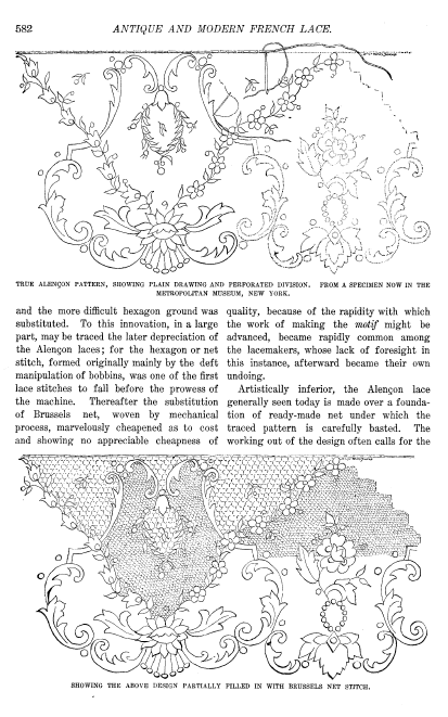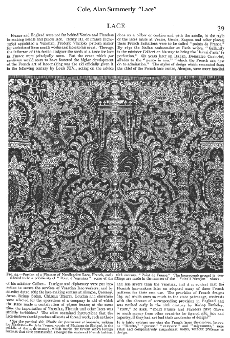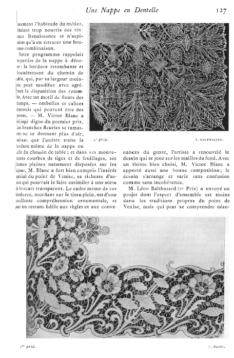 Le Concours de Dessins de la "Dentelle de France" [Design Competition Put on by the Lace Society of France], Cornh, Paul. Appleton's Encyclopedia, Vol. 25, May 1909, 6 pages. Posted June 7, 2005. SAMPLE PAGE. File size 3.7 MB PDF