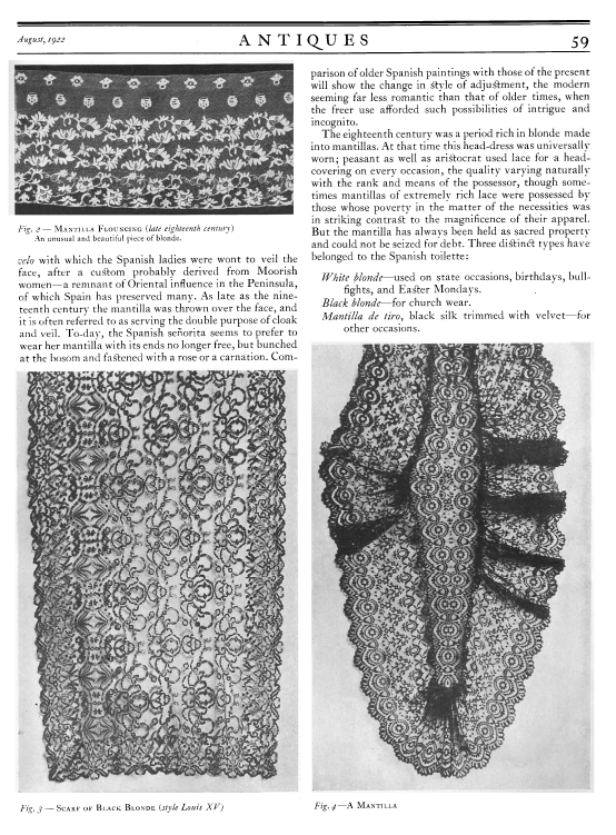 Spanish Blonde Lace, Ashley, Edgar L. Antiques, Vol. 2 (August 1922), 4 pages. Posted June 1, 2003. CD (LDA02). SAMPLE PAGE. File size 1,2 MB PDF