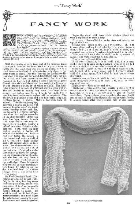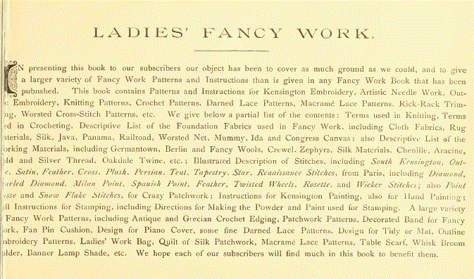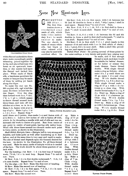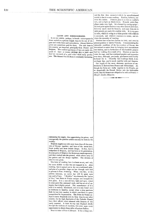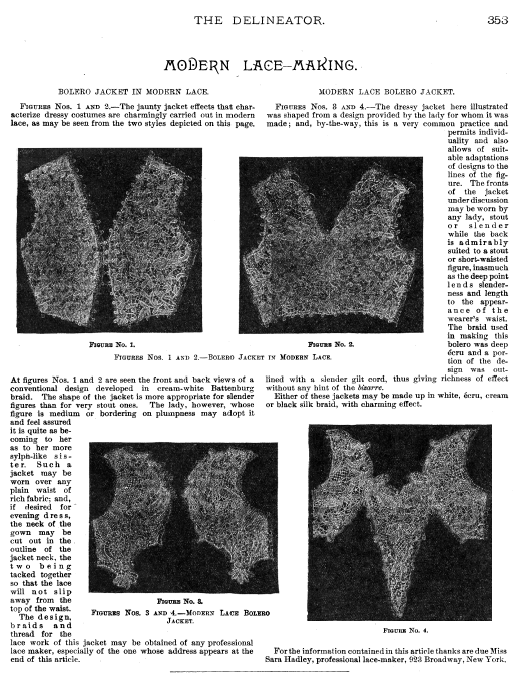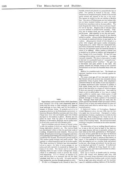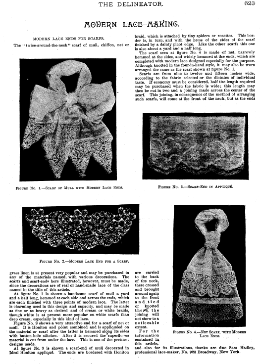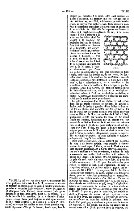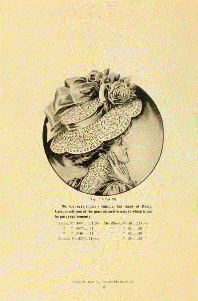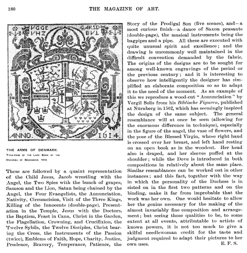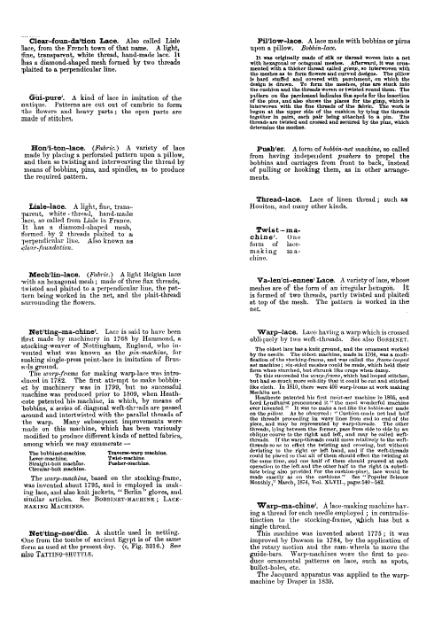 La Broderie et la Dentelle á l'Éxposition [Embroidery and Lace at the Exhibition], Soulier, Gustave. Appleton's Encyclopedia, Vol. 9 (June 1901), 6 pages. Posted June 15, 2005. SAMPLE PAGE. File size 2.2 MB PDF