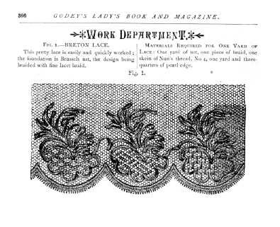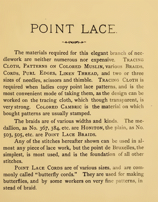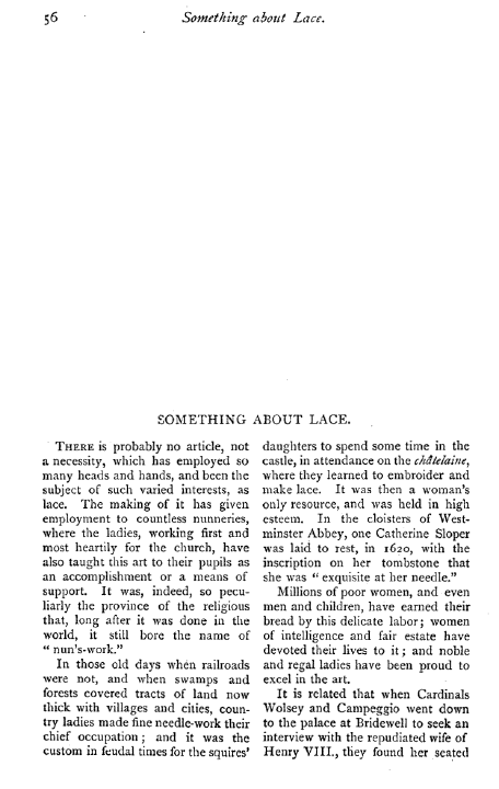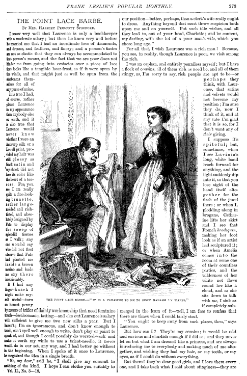 Spofford, Harriet Prescott. Point Lace Barbe, Leslie's Popular Monthly, 1876, 7 pages. Posted February 7, 2004. CD (LDA03). SAMPLE PAGE. File size 1.5 MB PDF