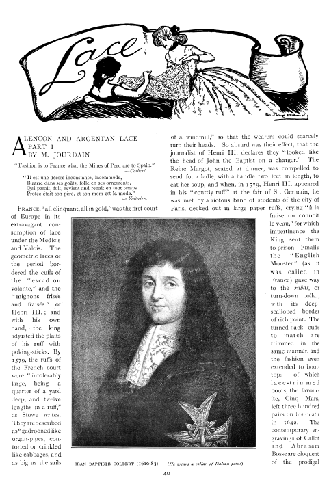 Royal Proclamation of 1665 Establishing the Manufacture of the Points de France, ---. The Bulletin of the Needle and Bobbin Club, Vol. 14, Nos. 1 & 2 (1930), 7 pages. Posted September 26, 2003. CD (LDA04). SAMPLE PAGE. File size 1 MB PDF