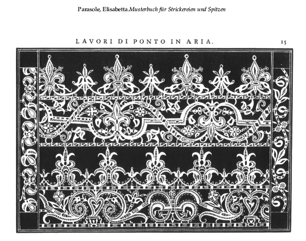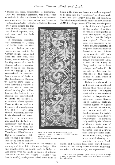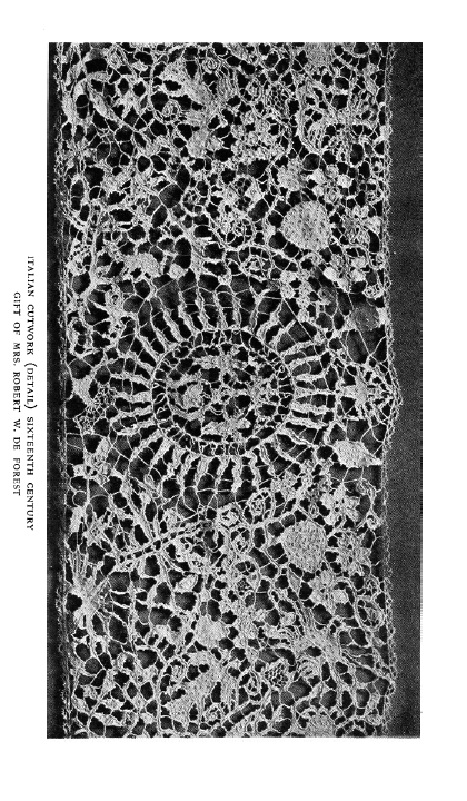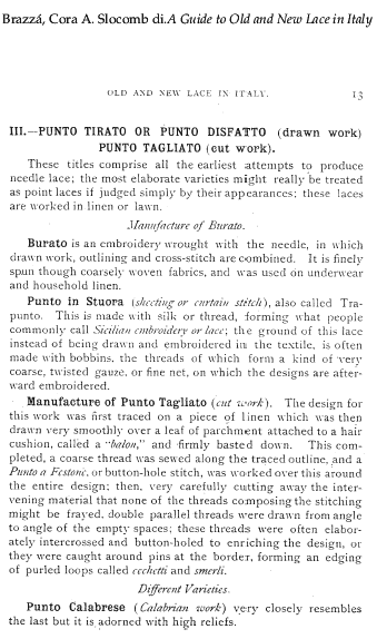 Italian Cutwork, ---. Bulletin of the Metropolitan Museum of Art, 1909, 1 page. Posted May 8, 2005. SAMPLE PAGE. File size 704 KB PDF