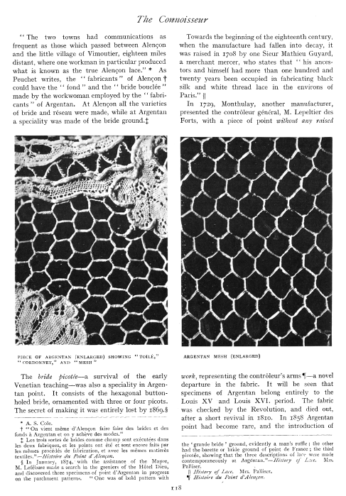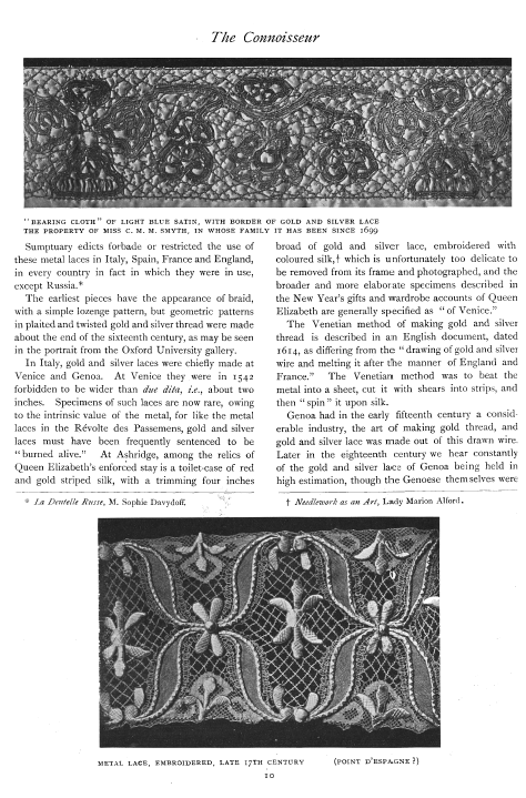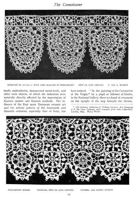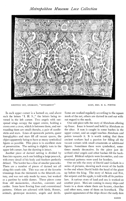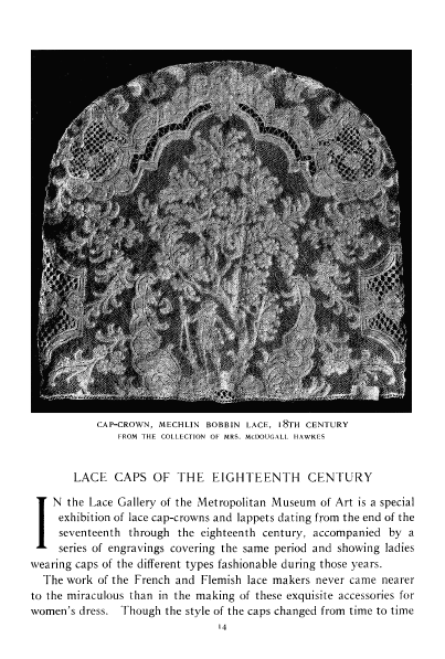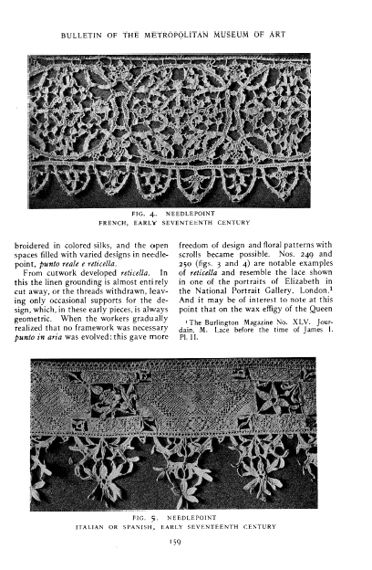 Notes on the Lace Collection, ---. Bulletin of the Metropolitan Museum of Art, 1906, 6 pages. Posted May 7, 2005. SAMPLE PAGE. File size 1.7 MB PDF