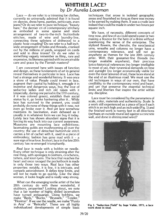 Lemin, Brian. Lace Bobbin Fashions, 6 pages. Posted December 28, 2010. FIRST PAGE. File size 864KB PDF