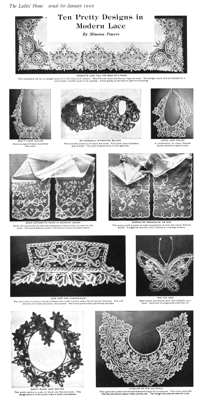 Une Nappe en Dentelle [A Lace Table Cloth], ---. Appleton's Encyclopedia, Vol. 8, October 1900, 3 pages. Posted June 7, 2005. SAMPLE PAGE. File size 1.6 MB PDF