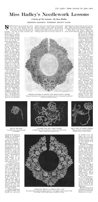 Point Lace Work. No. 16, 16 pages. Note: Reduced to 85% to fit on page. Posted September 13, 2004. File size 4.9 MB PDF