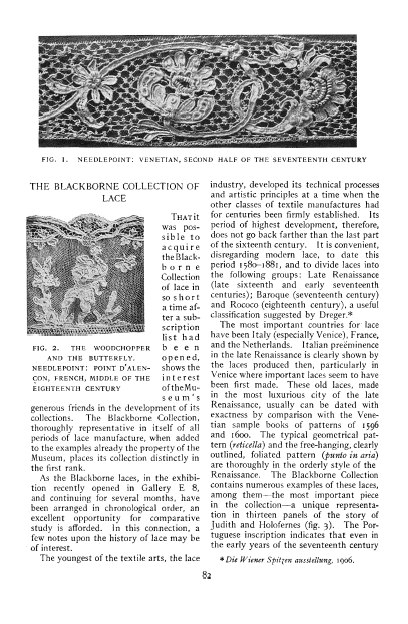 The Blackborne Collection of Lace, ---. Bulletin of the Metropolitan Museum of Art, 1909, 3 pages. Posted May 8, 2005. SAMPLE PAGE. File size 940 MB PDF