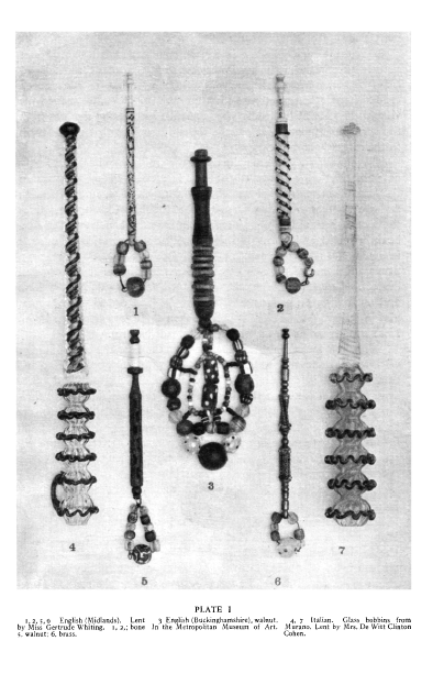 Lemin, Brian. English Lace Bobbins and Their History: A Brief Overview, 11 pages. Posted June 5, 2003. FIRST PAGE. File size 144 KB PDF