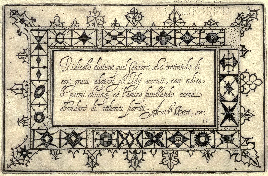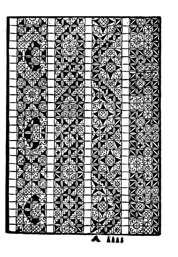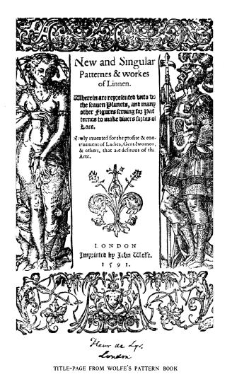 Elizabethan Pattern Book, Morris, Frances. The Bulletin of the Needle and Bobbin Club, Vol. 3 (1919), 6 pages. Note: Scanned images provided by Tess Parrish. Posted March 19, 2004. CD (LDA04). SAMPLE PAGE. File size 1.1 MB PDF