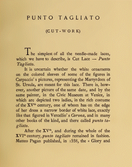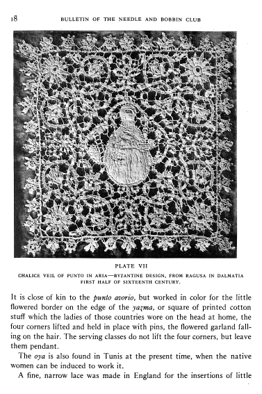 Ragusa: The Mystery Spot in Lace-History, Johnstone, Margaret Taylor. The Bulletin of the Needle and Bobbin Club, Vol. 10, No. 1 (1926), 18 pages. Posted September 22, 2003. CD (LDA04). SAMPLE PAGE. File size 2.5 MB PDF