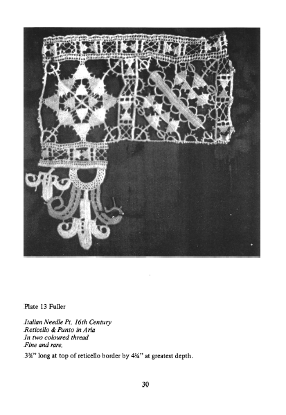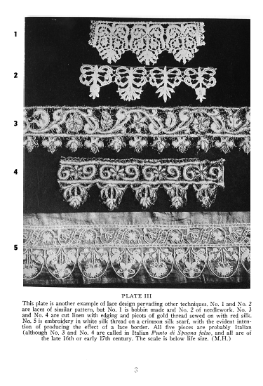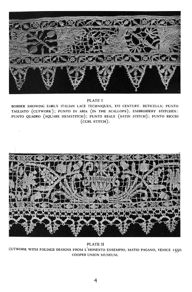 Development of Italian Lace from the Early Periods to the Baroque, Schuette, Marie. The Bulletin of the Needle and Bobbin Club, Vol. 34 (1950), 11 pages. Posted January 9, 2004. CD (LDA04). SAMPLE PAGE. File size 1.8 MB PDF