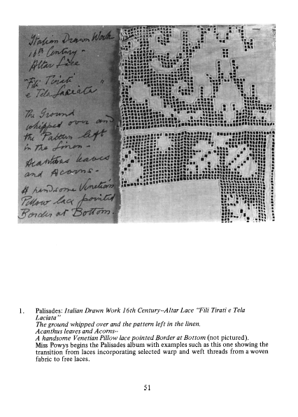 Bestiary in Lace, Powys. The Bulletin of the Needle and Bobbin Club, Vol. 47 (1963), 11 pages. Posted December 15, 2003. CD (LDA04). SAMPLE PAGE. File size 5 MB PDF