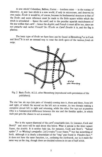 L'Étoile en Carré Double: Star in a Double Square: A Recently Rediscovered Lace Filling Stitch, Loveman, Aurelia L. The Bulletin of the Needle and Bobbin Club, Vol. 68 (1985), 9 pages. Note: By permission. Posted December 1, 2004. SAMPLE PAGE. File size 1 MB PDF