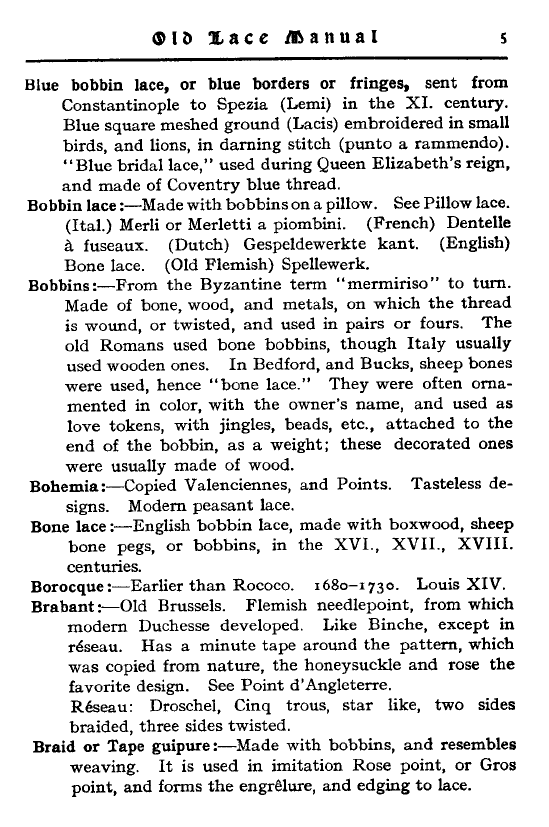 Lemin, Brian. Terms Used to Describe Lace Bobbins, 4 pages. Posted December 20, 2010. FIRST PAGE. File size 224KB PDF