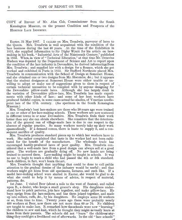 Lemin, Brian. The Lace Bobbins of East Devon, 22 pages. Posted April 27, 2014. FIRST PAGE. File size 63KB PDF