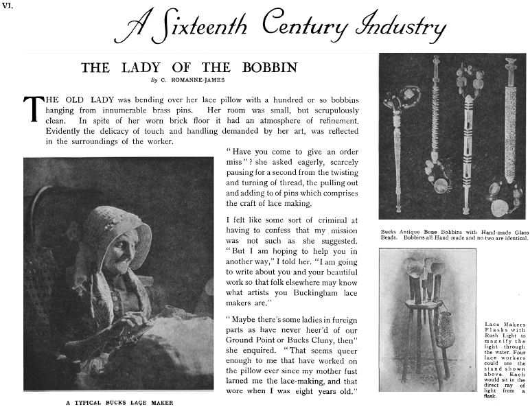 Lemin, Brian. In Praise of Antique Lace Bobbin Makers, 8 pages. Posted December 20, 2010. FIRST PAGE. File size 320KB PDF