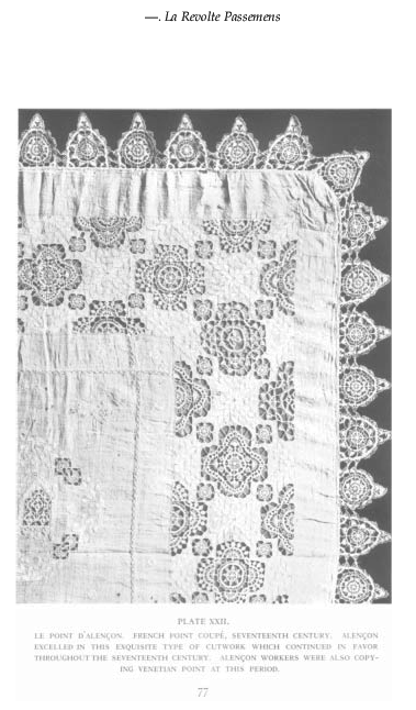 La Révolte des Passemens, ---. The Bulletin of the Needle and Bobbin Club, Vol. 14, Nos. 1 & 2 (1930), 37 pages. Posted September 26, 2003. CD (LDA04). SAMPLE PAGE. File size 3.5 MB PDF
