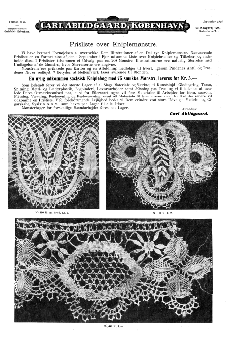 ---. [Catalog], Carl Abildgaard, Kobenhavn, 1915, 8 pages. Note: Reduced to 80% to fit on page. Scanned images provided by Tess Parrish. Posted April 3, 2004. CD (HWDA10). SAMPLE PAGE. File size 5 MB PDF