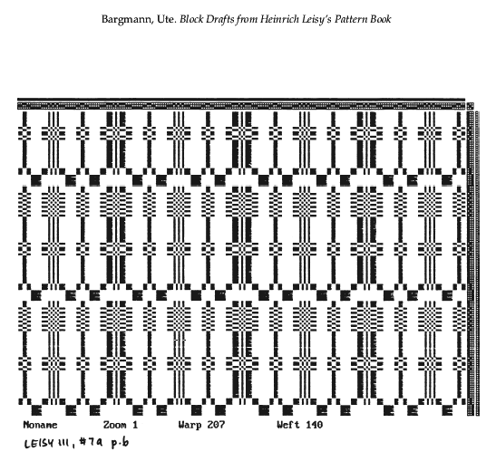 Bargmann, Ute. Block Drafts from Heinrich Leisy's Pattern Book, 2000, 236 pages. Note: Computer drafts. Posted November 27, 2001. CD (CWDA02). SAMPLE PAGE. Part 1: File size 6.1 MB PDF. Part 2: File size 6.4 MB PDF.