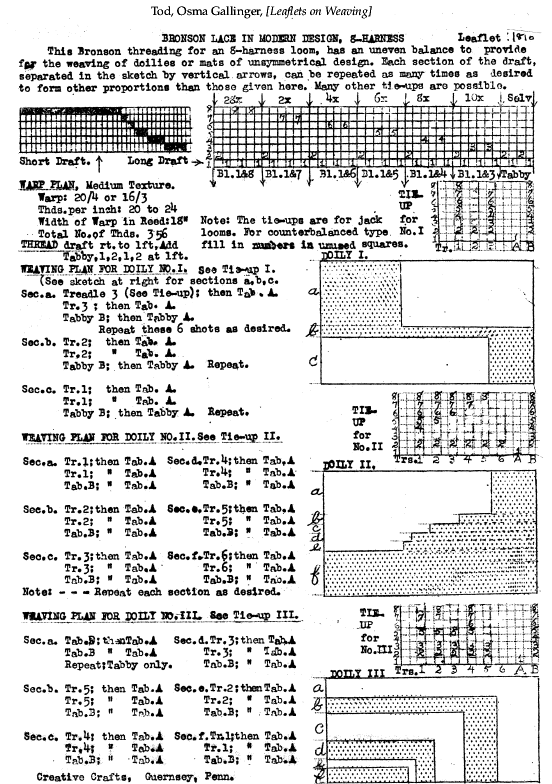 Tod, Osma Gallinger. [Leaflets on Weaving], 250 pages. CD (HWDA09). Posted March 16, 2003. SAMPLE PAGE. Part 1: File size 7.7 MB PDF. Part 2: File size 7.2 MB PDF. Part 3: File size 8.5 MB PDF. Part 4: File size 8.4 MB PDF. Part 5: File size 8.6 MB PDF.