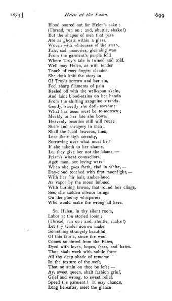 Lathrop, George Parsons. Helen at the Loom, Atlantic Monthly, 1873, 3 pages. CD (HWDA09). Posted January 7, 2004. SAMPLE PAGE. File size 716 KB PDF