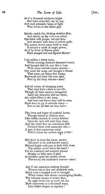 Parker, H. W. Loom of Life, American Whig review, Vol. 5 (1847), 3 pages. CD (HWDA09). Posted January 2, 2004. SAMPLE PAGE. File size 680 KB PDF
