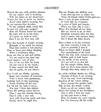 ---. Crochet, Harper's New Monthly Magazine, 1 page. CD (HWDA10). Posted September 12, 2004. SAMPLE PAGE. File size 576 KB PDF