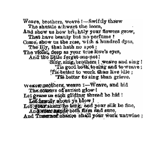 ---. [Weave, brothers, weave!], Penny Illustrated Paper, May 18, 1867, 1 page. Posted May 3, 2005. SAMPLE PAGE. File size 404 KB PDF