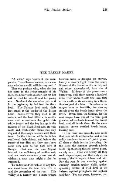 Austin, Mary. Basket Maker, Atlantic Monthly, Vol. 91 (1903), 4 pages. CD (HWDA09). Posted October 28, 2003. SAMPLE PAGE. File size 664 KB PDF