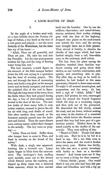 Austin, Mary. Loom-Master of Iran, Atlantic Monthly, Vol. 89 (1902), 9 pages. CD (HWDA09). Posted October 28, 2003. SAMPLE PAGE. File size 1 MB PDF