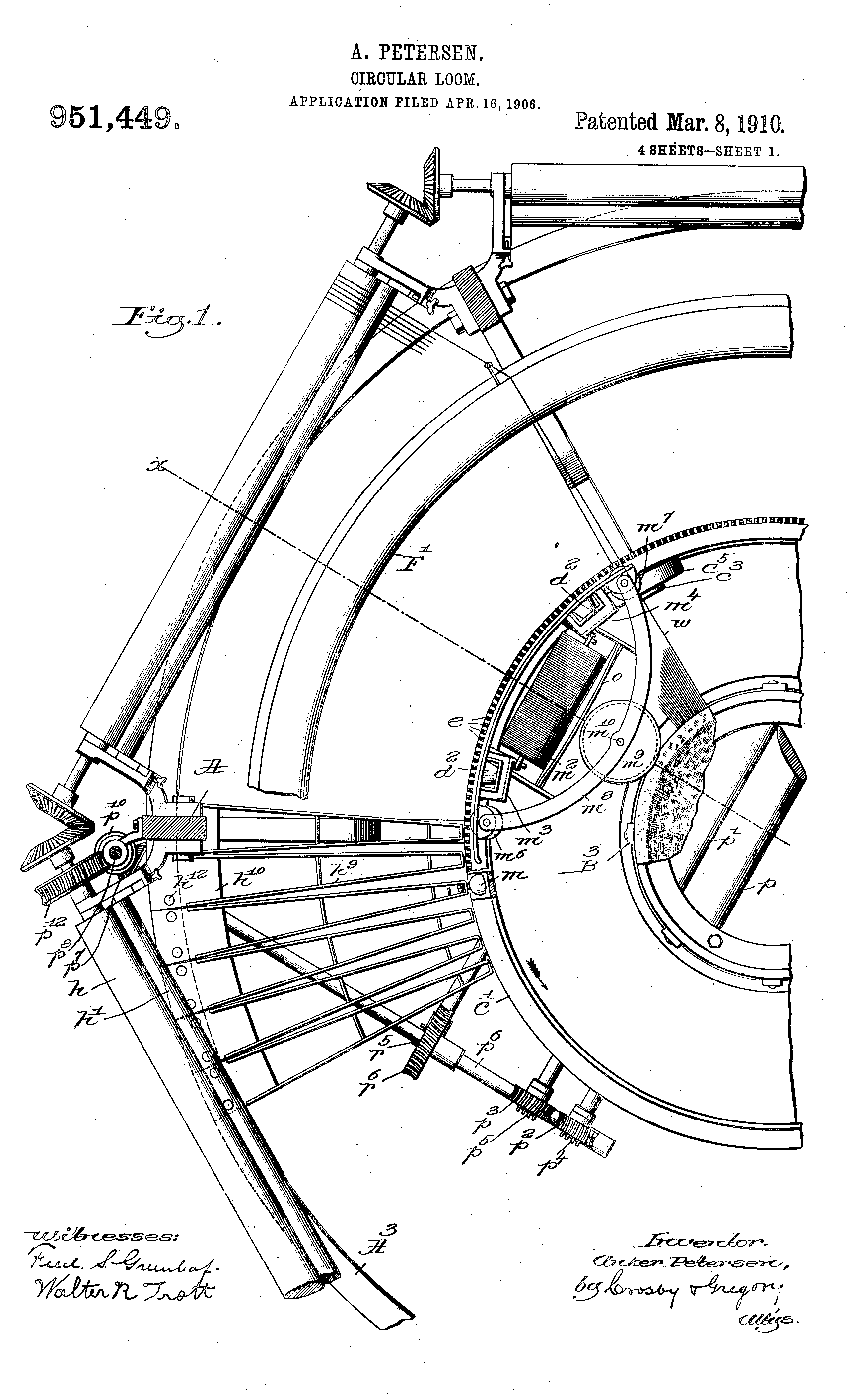Circular Loom, US00951449, Petersen, A., March 10, 1910, 11 pages. Posted October 8, 2002. CD (HWDA10). SAMPLE PAGE. File size 1.1 MB PDF