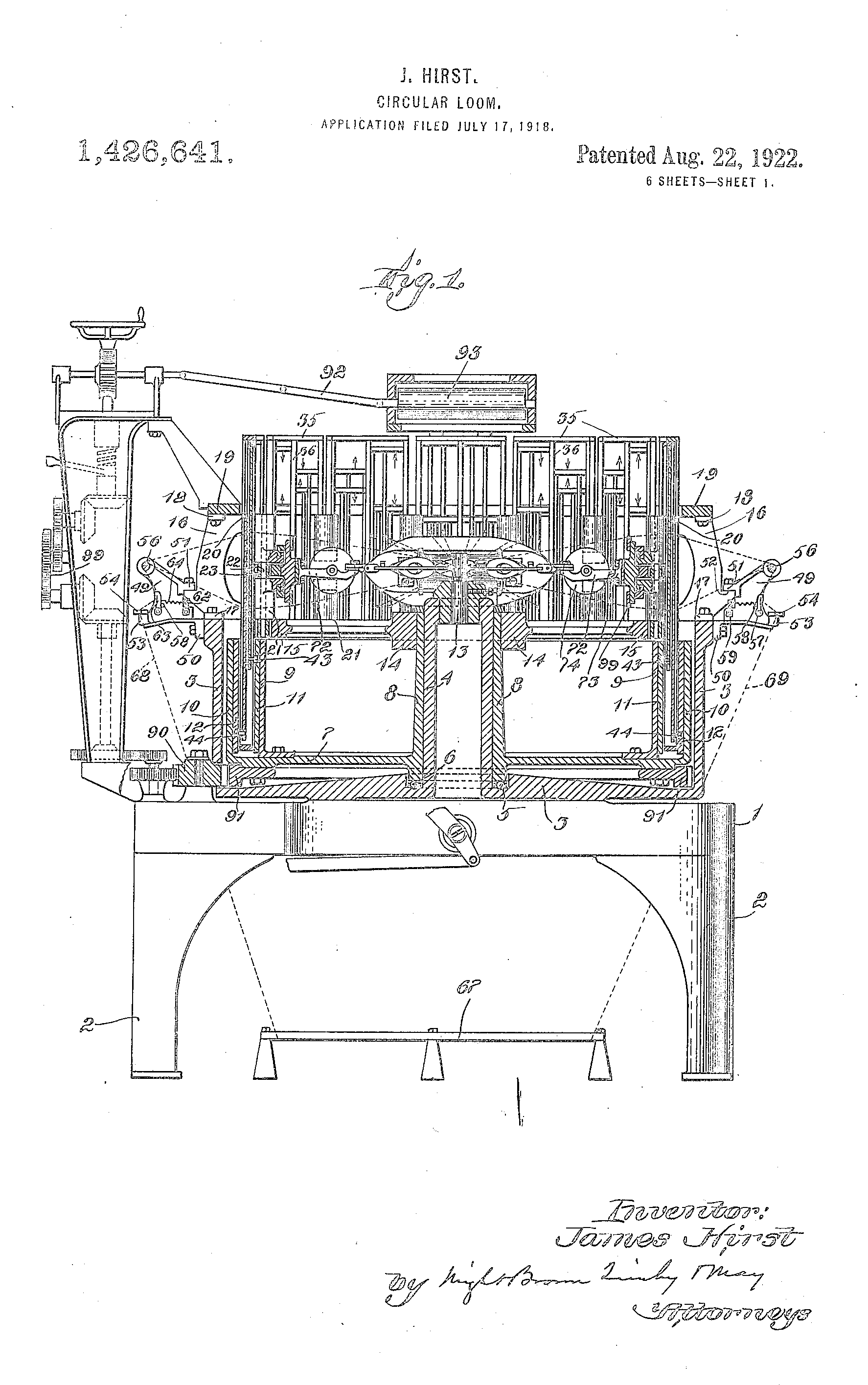 Circular Loom, US01426641, Hirst, J., August 22, 1922, 12 pages. Posted October 30, 2002. CD (HWDA10). SAMPLE PAGE. File size 1.3 MB PDF
