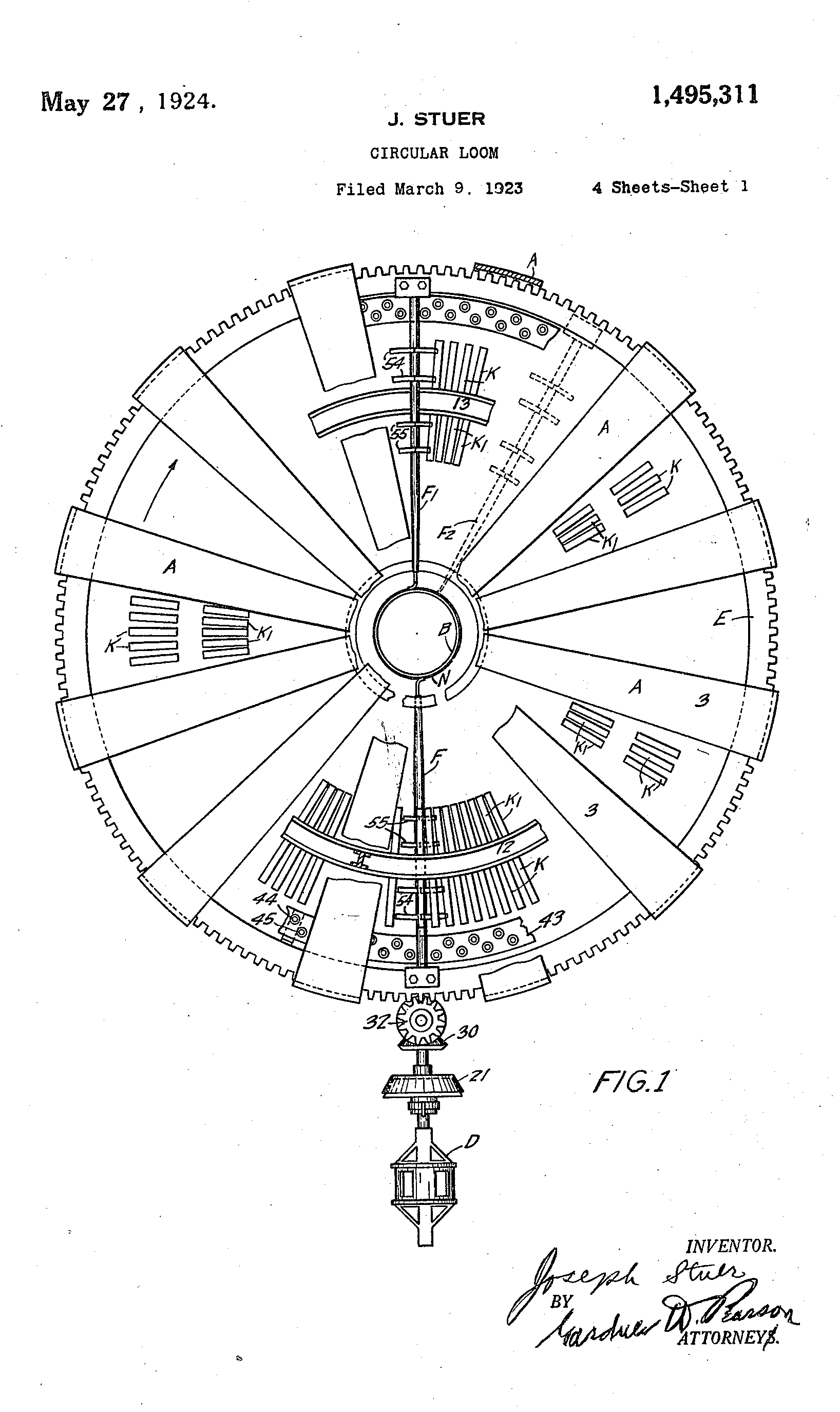 Circular Loom, US01495311, Stuer, J., May 27, 1924, 7 pages. Posted October 30, 2002. CD (HWDA10). SAMPLE PAGE. File size 767 KB PDF