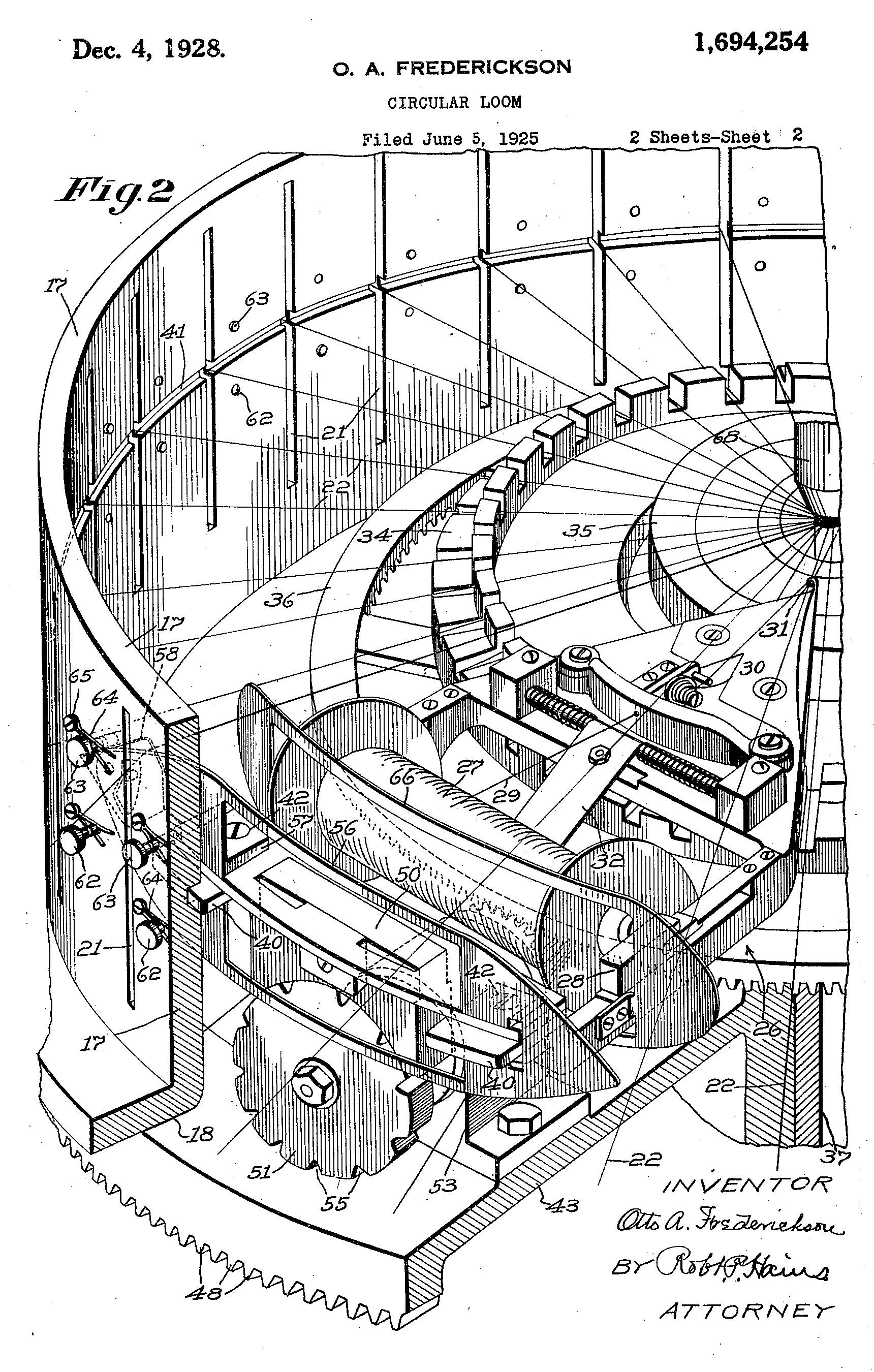 Circular Loom, US01694254, Frederickson, O. A., December 4, 1928, 6 pages. Posted October 30, 2002. CD (HWDA10). SAMPLE PAGE. File size 980 KB PDF