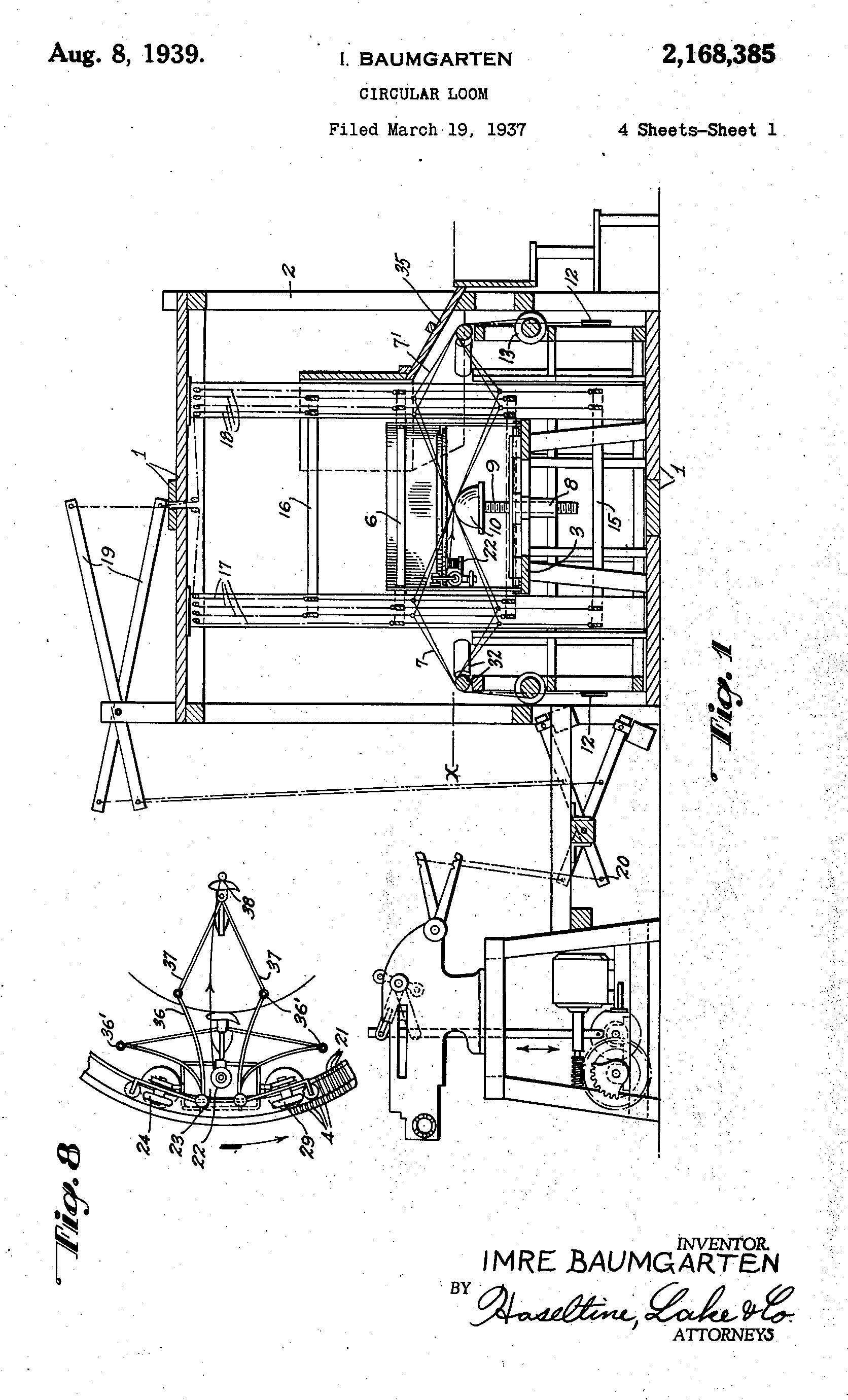Circular Loom, US02168385, Baumgarten, I., August 8, 1939, 7 pages. Posted October 8, 2002. CD (HWDA10). SAMPLE PAGE. File size 884 KB PDF