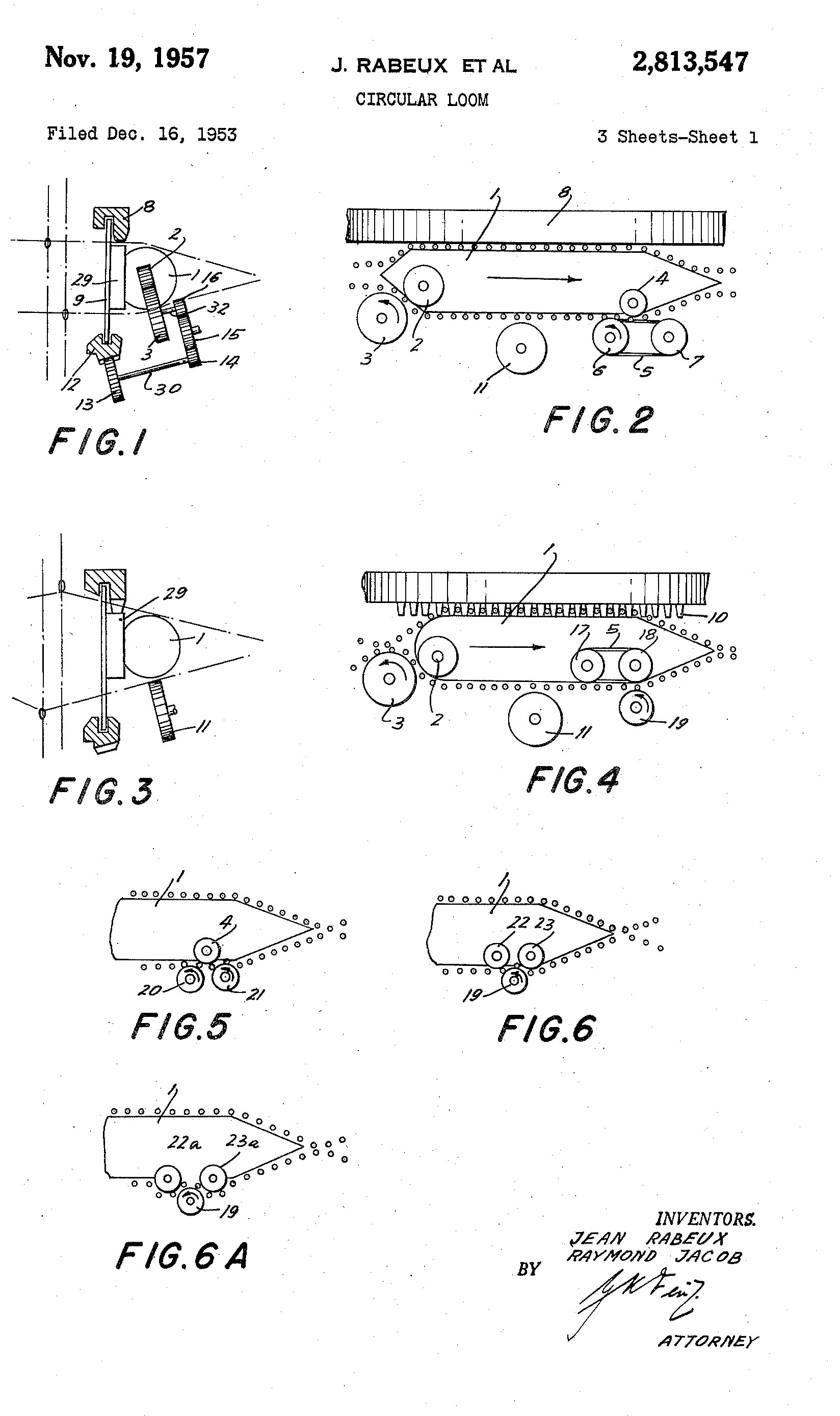 Circular Loom, US02813547, Rabeux, J, et al, November 19, 1957, 7 pages. Posted October 8, 2002. CD (HWDA10). SAMPLE PAGE. File size 884 KB PDF
