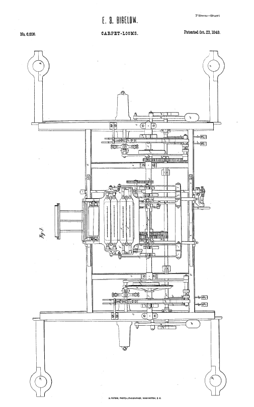 Carpet-Looms, US00006806, Bigelow, E. B., October 23, 1849, 14 pages. Posted January 2, 2004. CD (HWDA10). SAMPLE PAGE. File size 1.5 MB PDF
