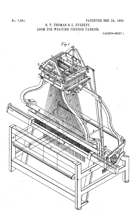 Loom for Weaving Figured Fabrics, US00007861., Thomas, S. T. and E. Everett, December 24, 1850, 6 pages. Posted January 2, 2004. CD (HWDA10). SAMPLE PAGE. File size 808 KB PDF