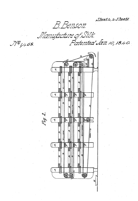 Manufacture of Silk, US00001468, Benson, B., January 10, 1840, 4 pages. Posted July 18, 2003. CD (HWDA10). SAMPLE PAGE. File size 600 KB PDF