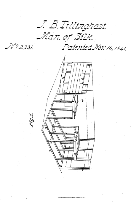 Manufacture of Silk, US00002331, Tillighast, J. B., November 10, 1841, 3 pages. Posted July 19, 2003. CD (HWDA10). SAMPLE PAGE. File size 592 KB PDF