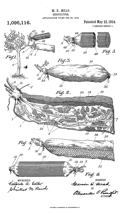Sericulture, US01096116, Mead, M. H., May 12, 1914, 7 pages. Posted January 22, 2005. SAMPLE PAGE. File size 1.1 MB PDF