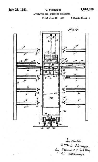 Apparatus for Breeding Silkworms, US01816368, Fioruzzi, V., July 28, 1931, 15 pages. Posted February 5, 2005. SAMPLE PAGE. File size 1.4 MB PDF