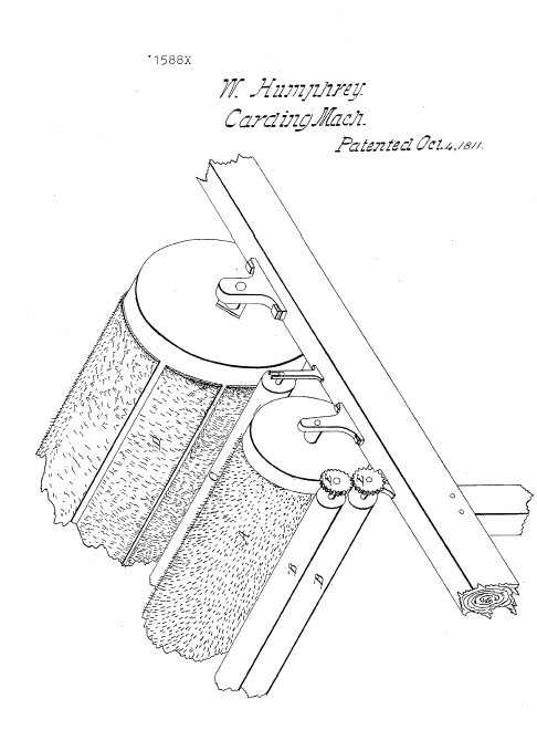 Carding Machine, USX0001588, Humphery, W., October 4, 1811, 1 page. Posted June 28, 2003. CD (HWDA10). SAMPLE PAGE. File size 424 KB PDF