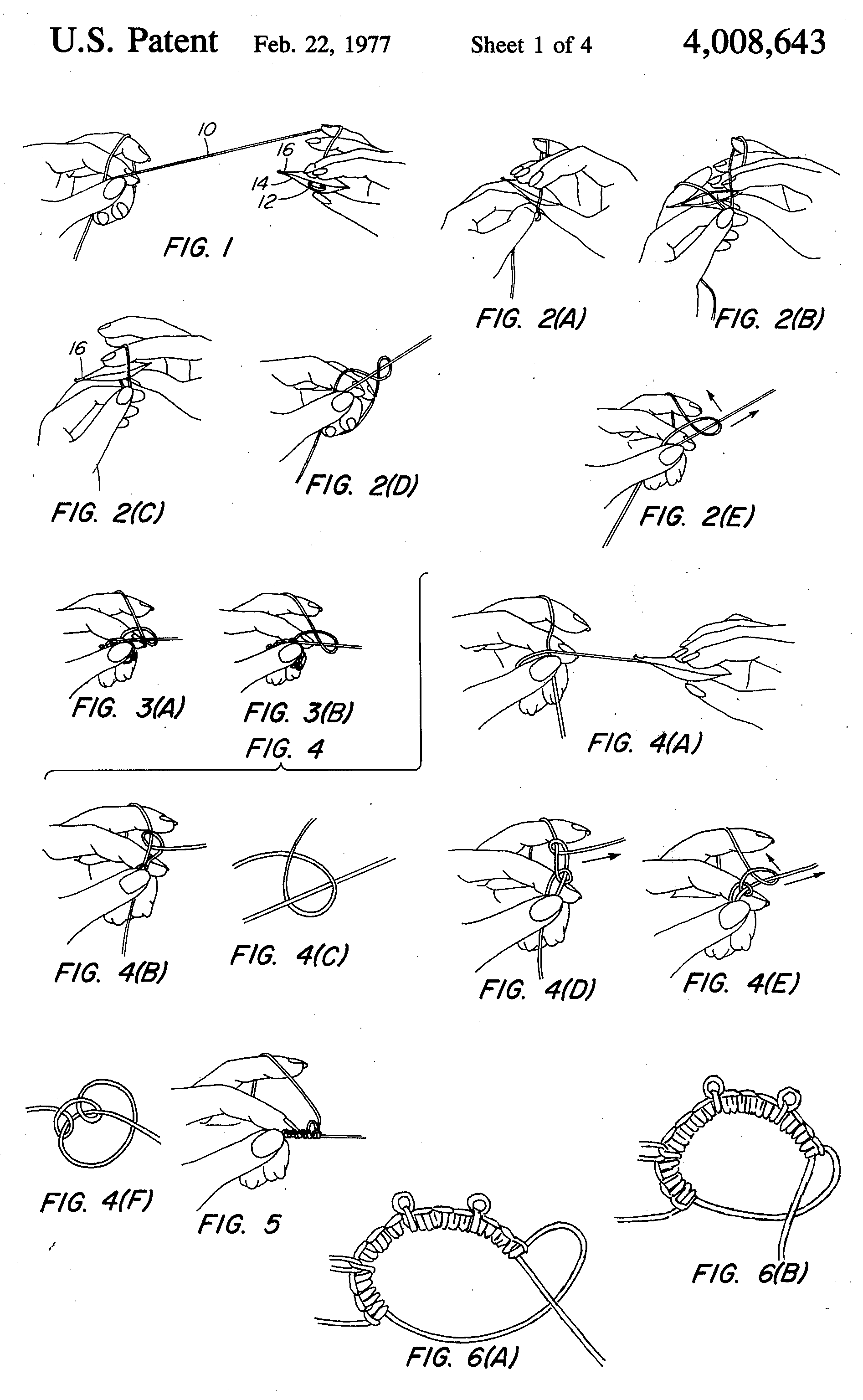 Knotless Tatting, US04008643, Young, Dora M., December 17, 1976, 16 pages. Posted October 8, 2002. CD (HWDA10). SAMPLE PAGE. File size 1 MB PDF