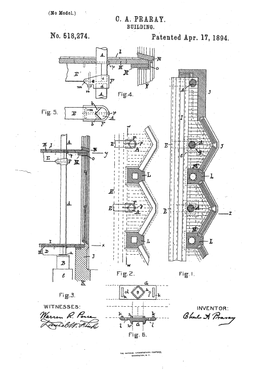Building, US00518274, Praray, C. A., April 17, 1894, 4 pages. Posted September 13, 2004. CD (HWDA10). SAMPLE PAGE. File size 704 KB PDF