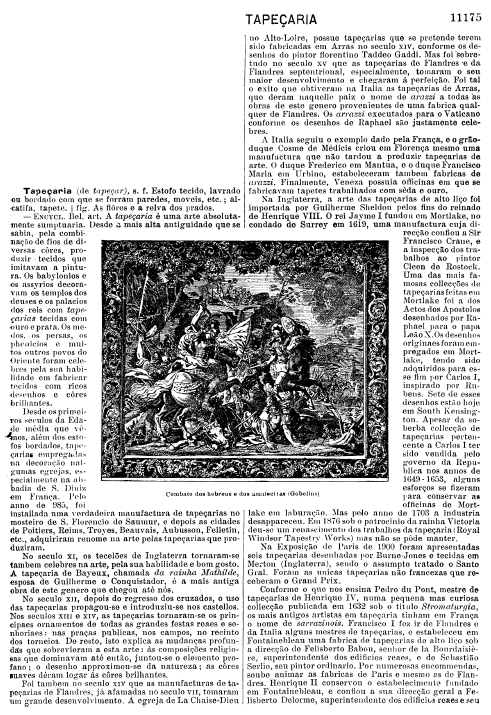 Tapeçria [Tapestry], ---. Encyclopedia e Diccionario Internacional, 2 pages. Posted August 17, 2003. SAMPLE PAGE. File size 776 KB PDF