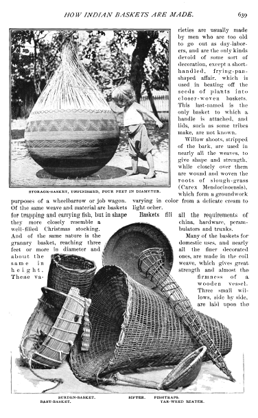 How Indian Baskets are Made, Carpenter, Helen M. Cosmopolitan, Vol. 19 (1900), 3 pages. Posted September 15, 2003. CD (HWDA09). SAMPLE PAGE. File size 772 KB PDF