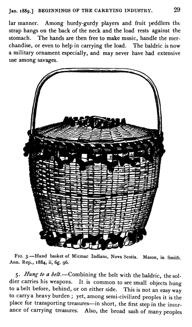 Beginnings of the Carrying Industry, Mason, Otis T. American Anthropologist, Vol. 2 (1889), 26 pages. Posted October 14, 2003. CD (HWDA07). SAMPLE PAGE. File size 2.4 MB PDF